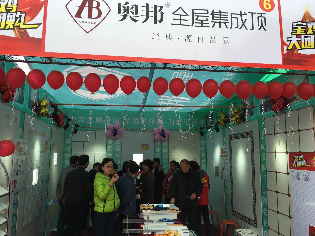 2017年4月8日,奧邦全屋集成頂與諸多家國內一線家裝建材品牌,攜手參加了在寶雞客運中心廣場舉辦的寶雞大團購活動,旨在給寶雞市民打造高端建材家裝采購的全方位購物平臺,并提供實惠便利的建材家裝購物條件。